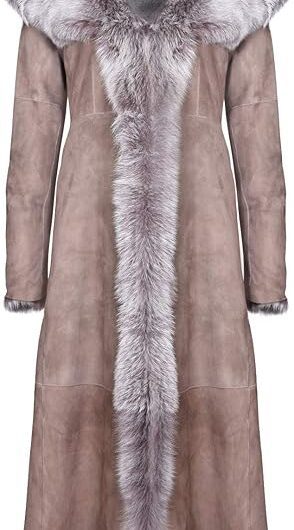 - Taupe Full Length Hooded Ladies Suede Toscana Sheepskin Leather Trench Coat