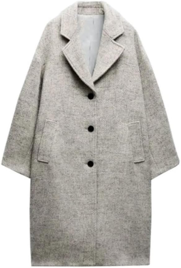 EWUROI Women’s Autumn and Winter New Lapel Long Sleeve Pullover Coat Warm Outerwear